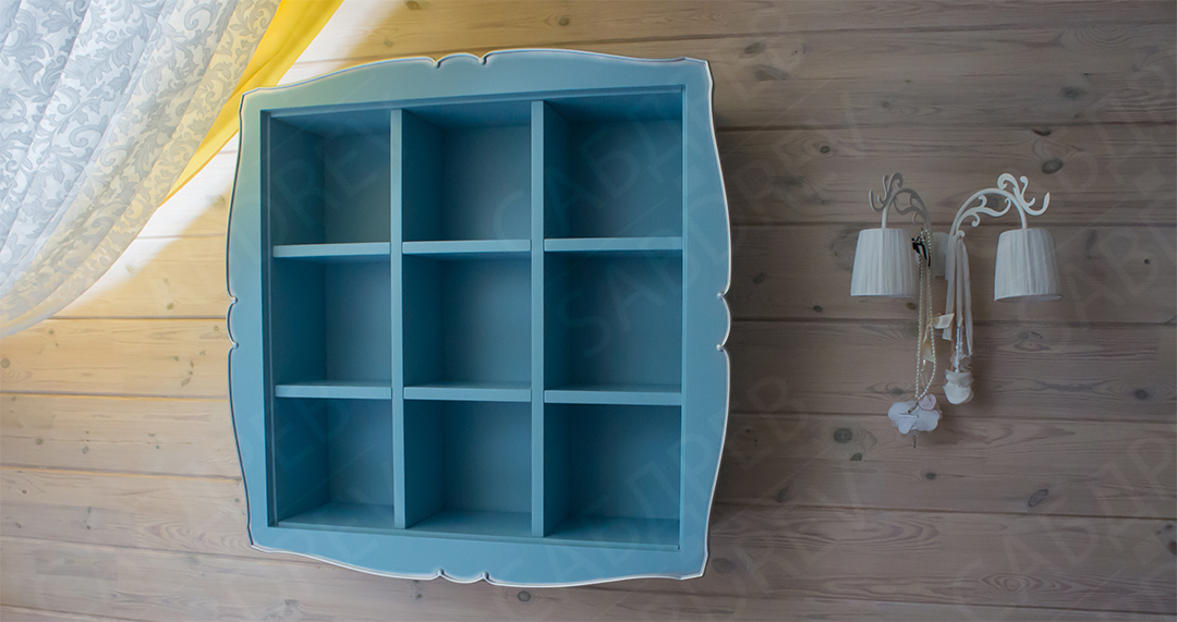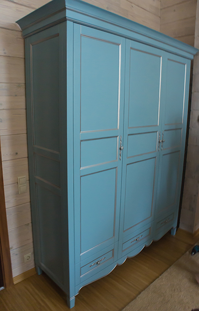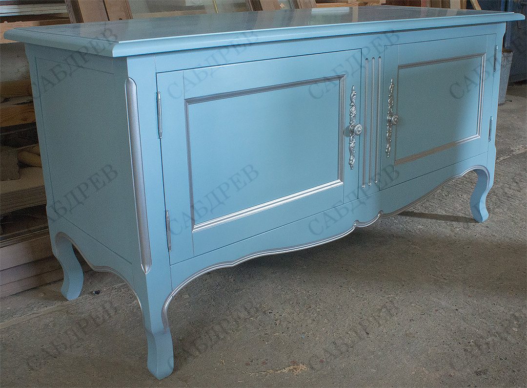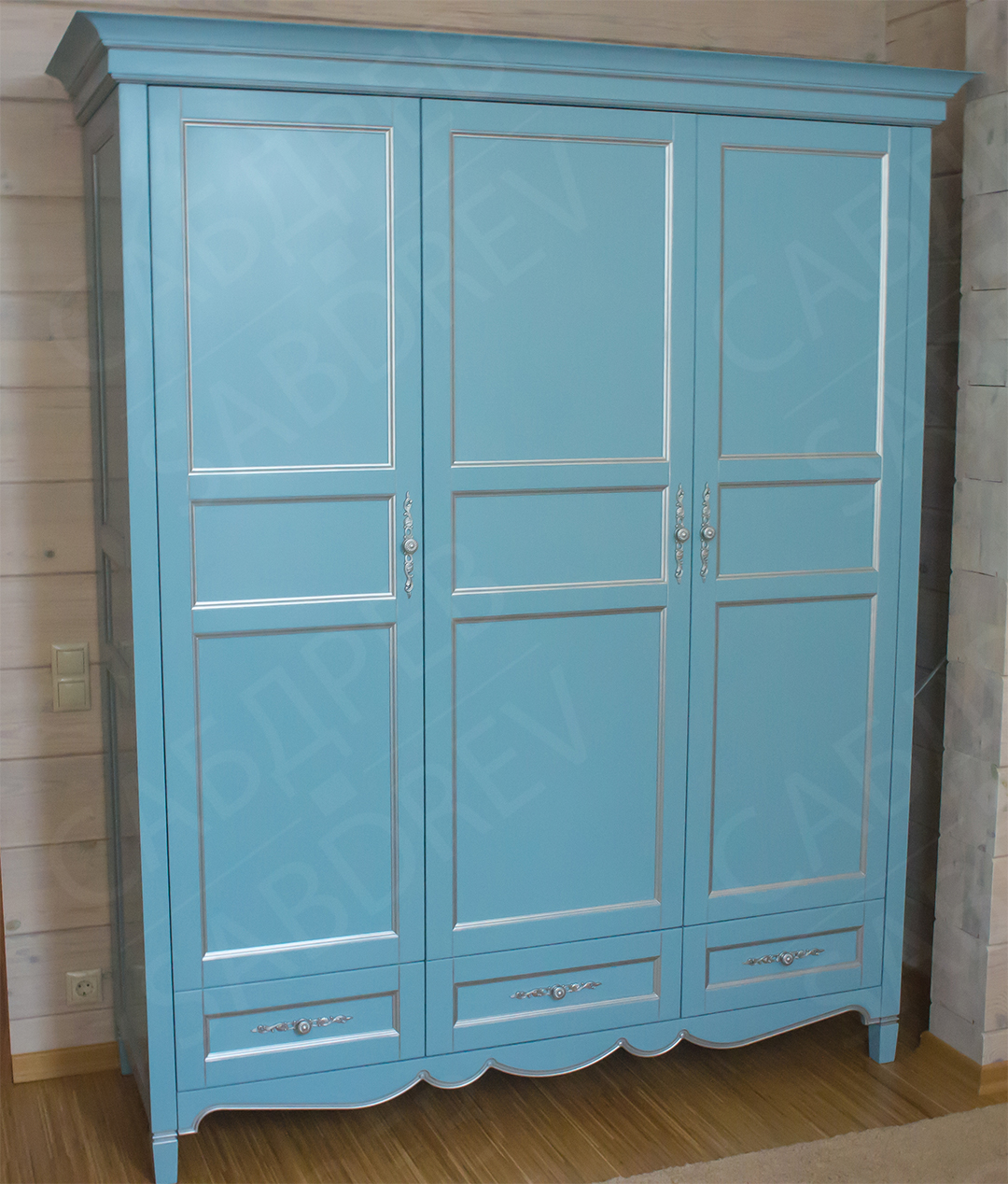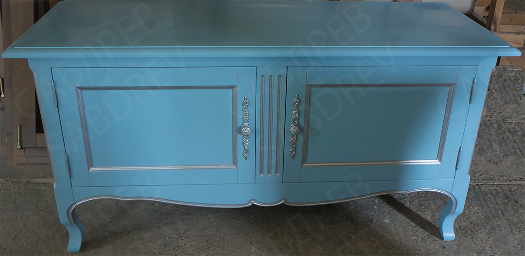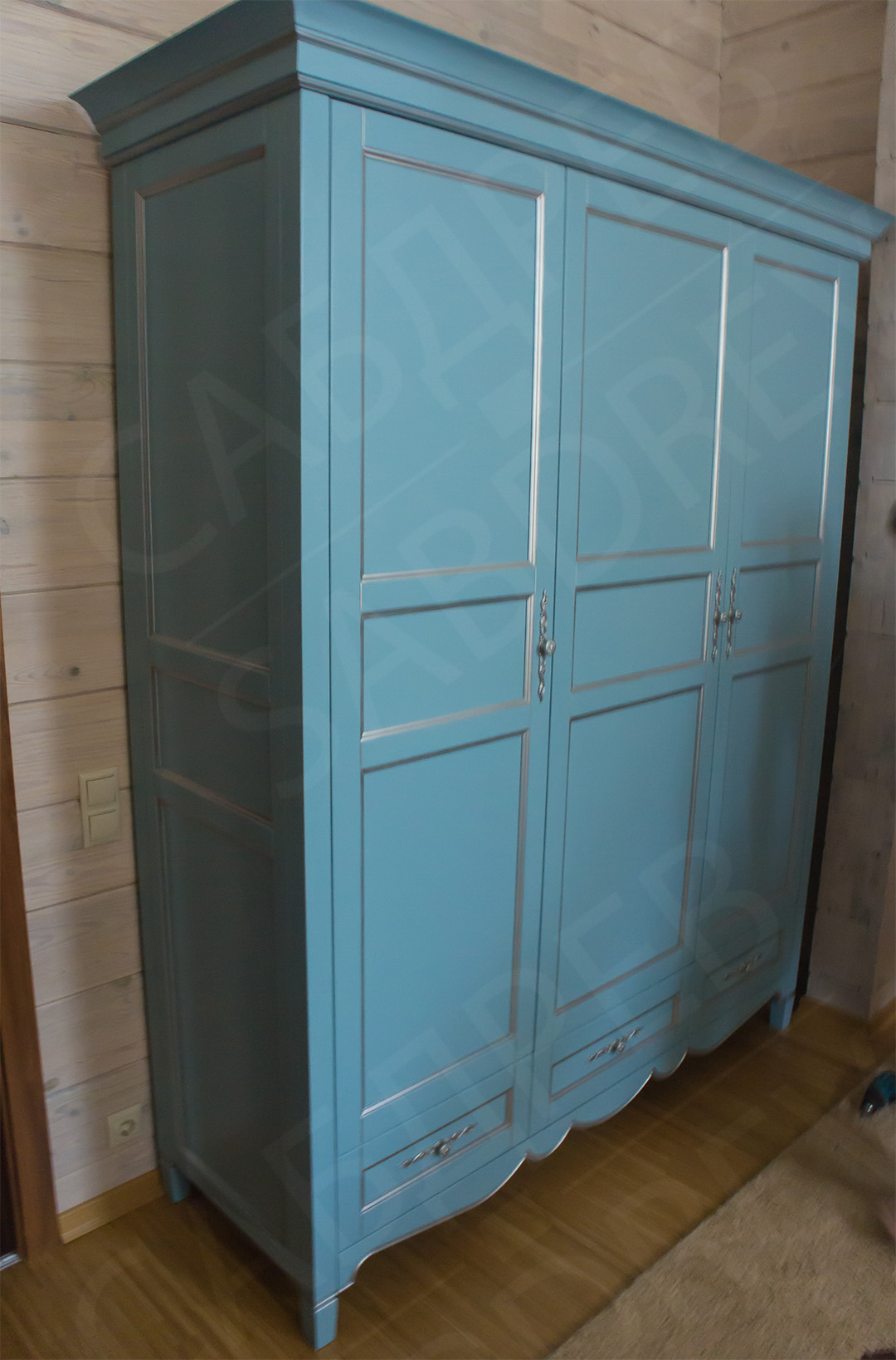 Набор мебели в детскую комнату из массива ольхи состоит из шкафа, тубы под ТВ, полки. Окраска эмалью с дополнительным нанесением ”серебряной” патины.