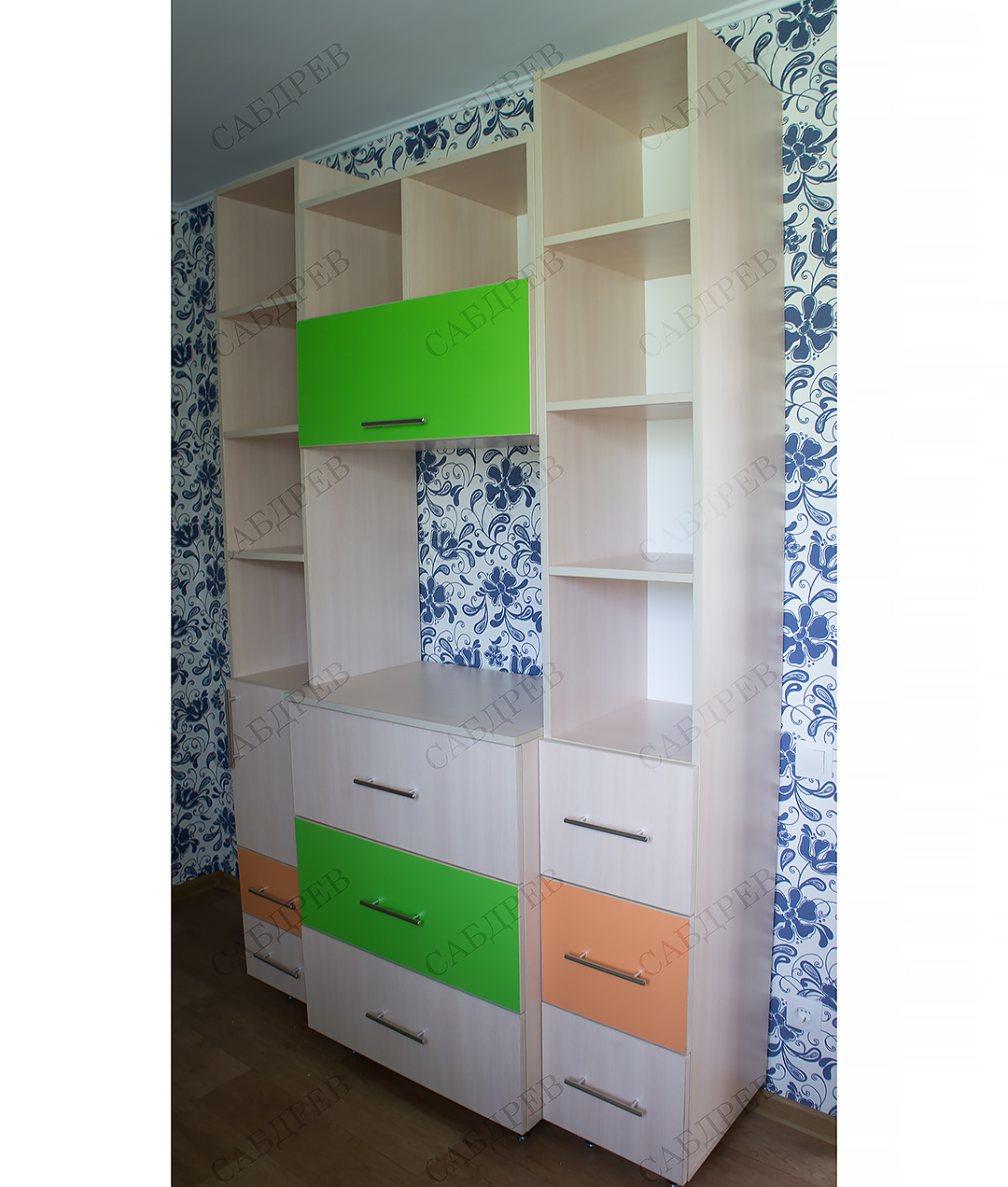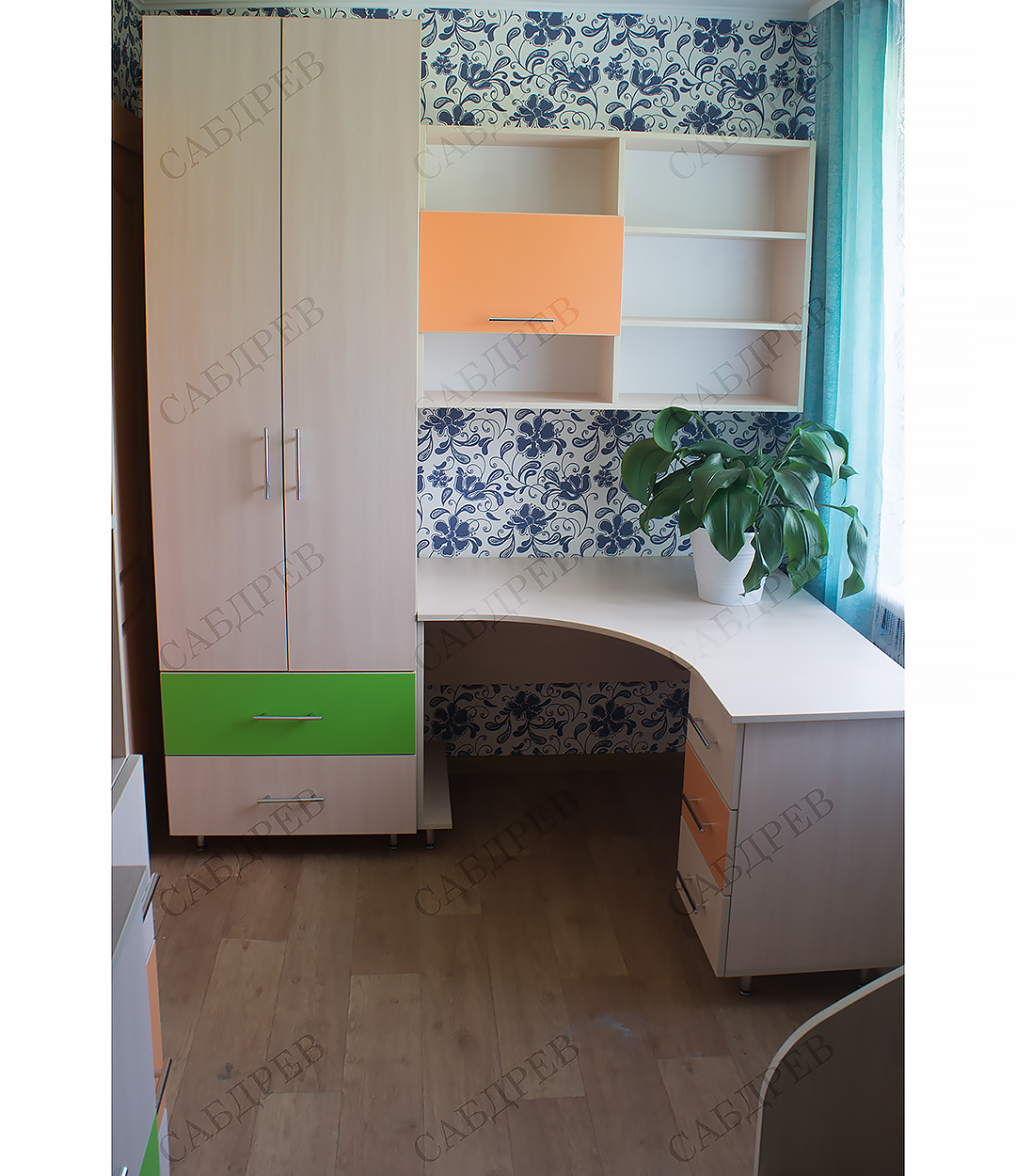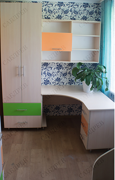 Мебель в детскую изготовлена из ЛДСП KronoSpan . В заказе использовалась фурнитура GTV (Польша).