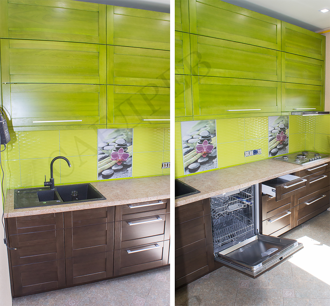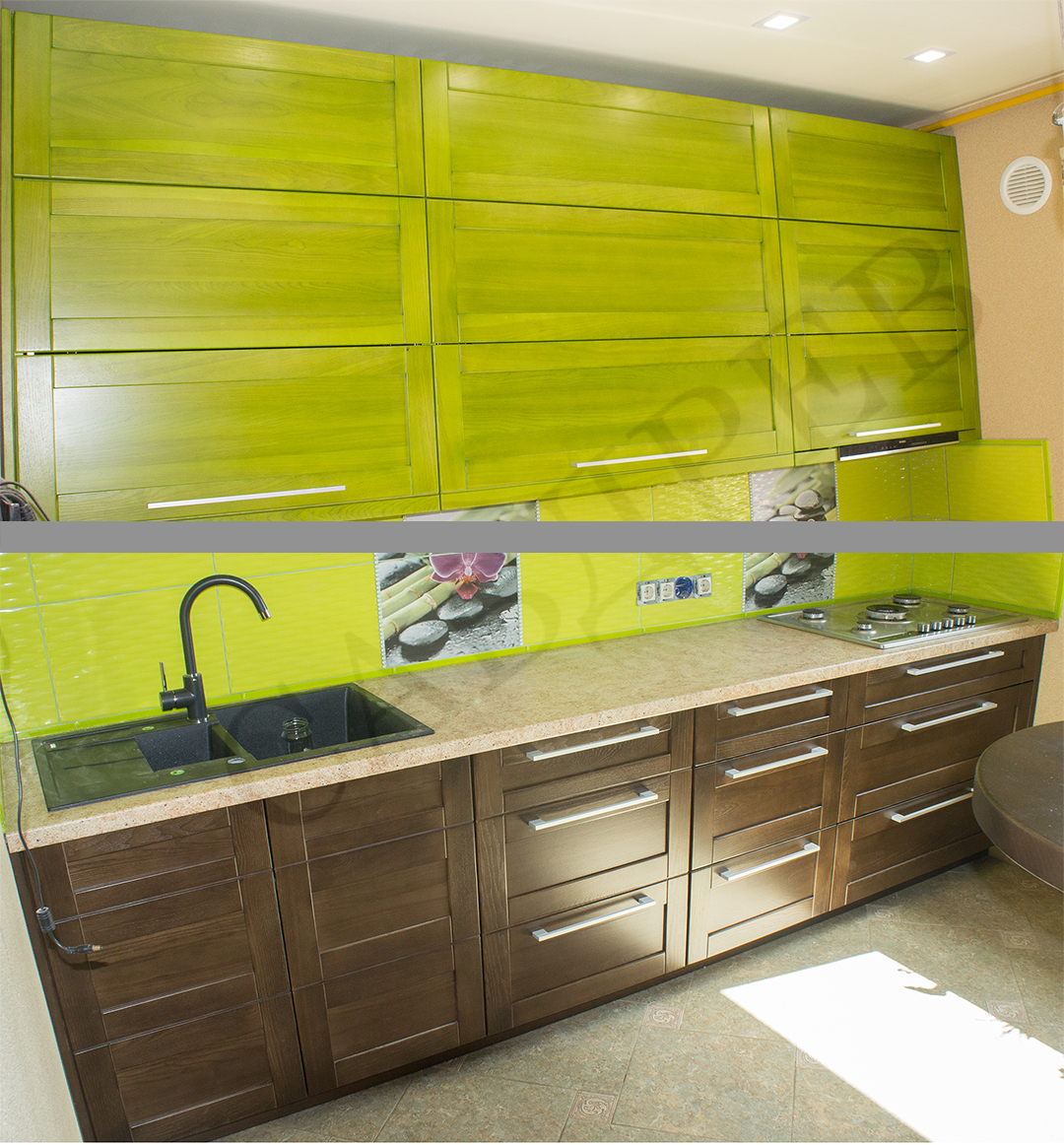 Возможно изготовление кухонь по вашим размерам и эскизам из ЛДСП, МДФ, пластика, шпона, массива (ольхи, дуба, ясеня)